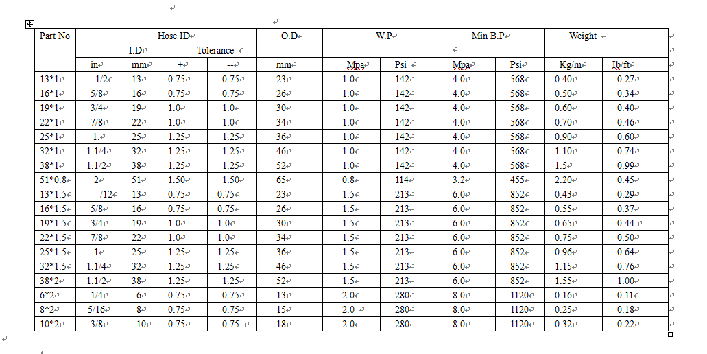 b. Hose to polyester line enhanced, with oil resistance and good climate of special rubber manufacturing, it can be use in the range of -40~100 degrees